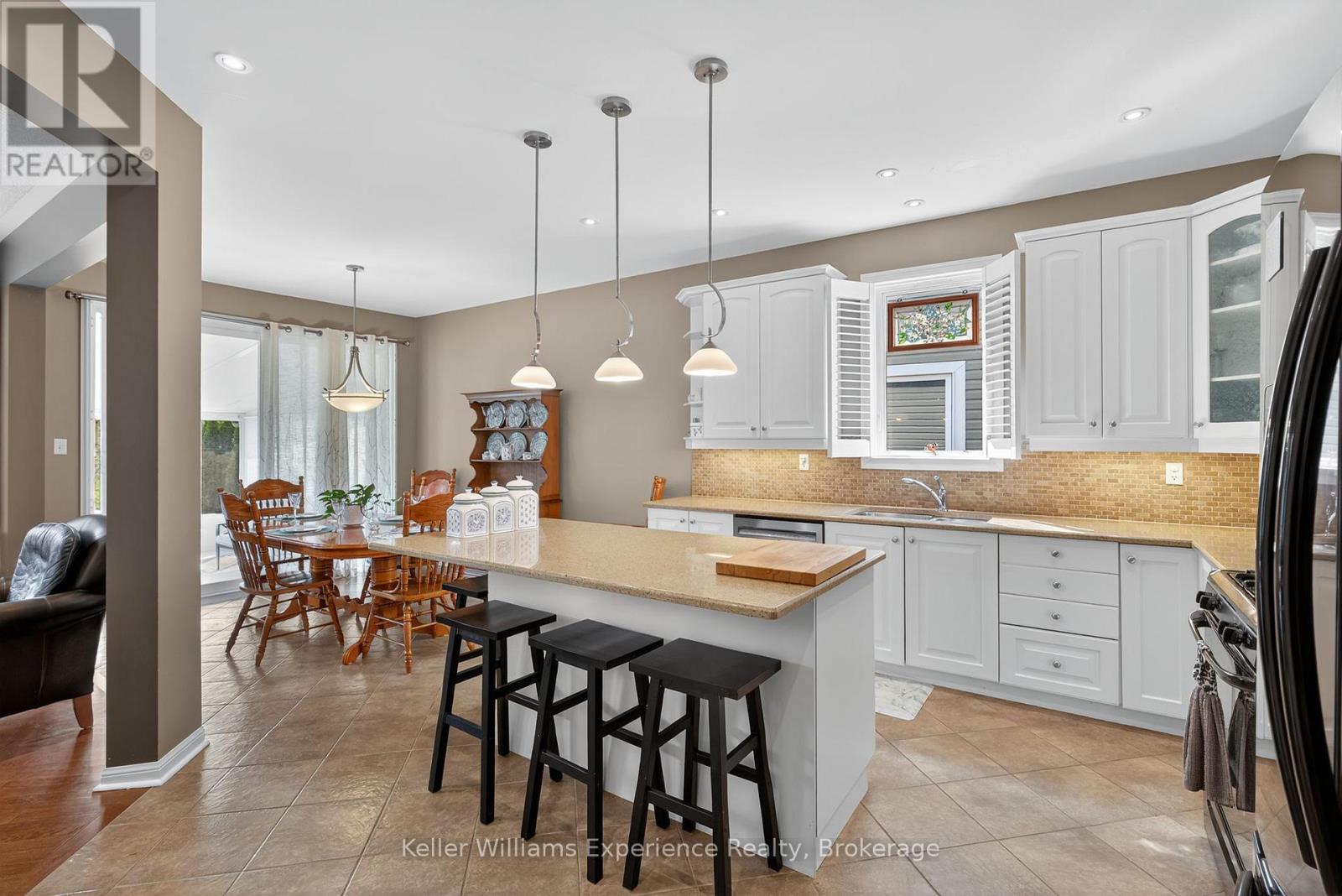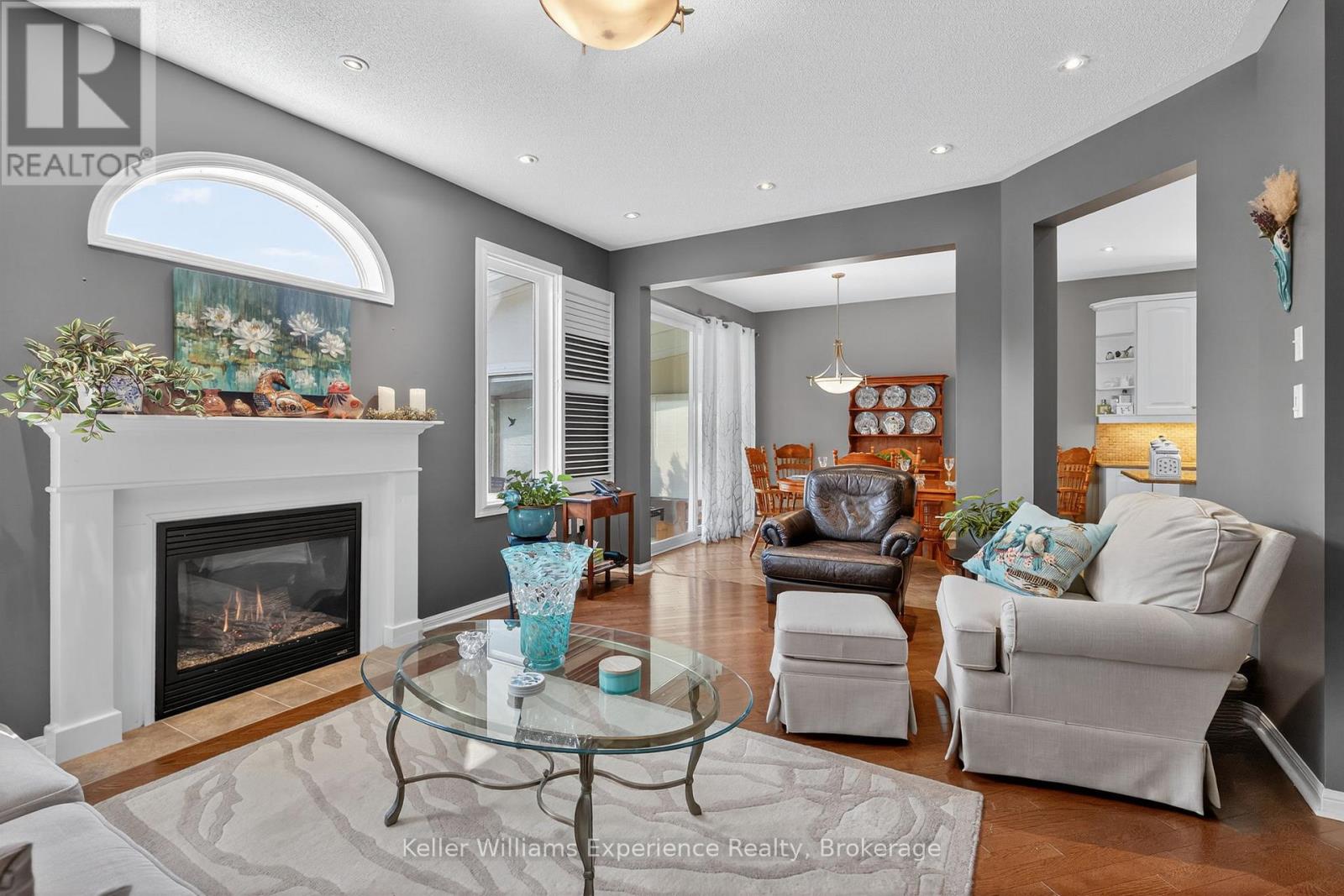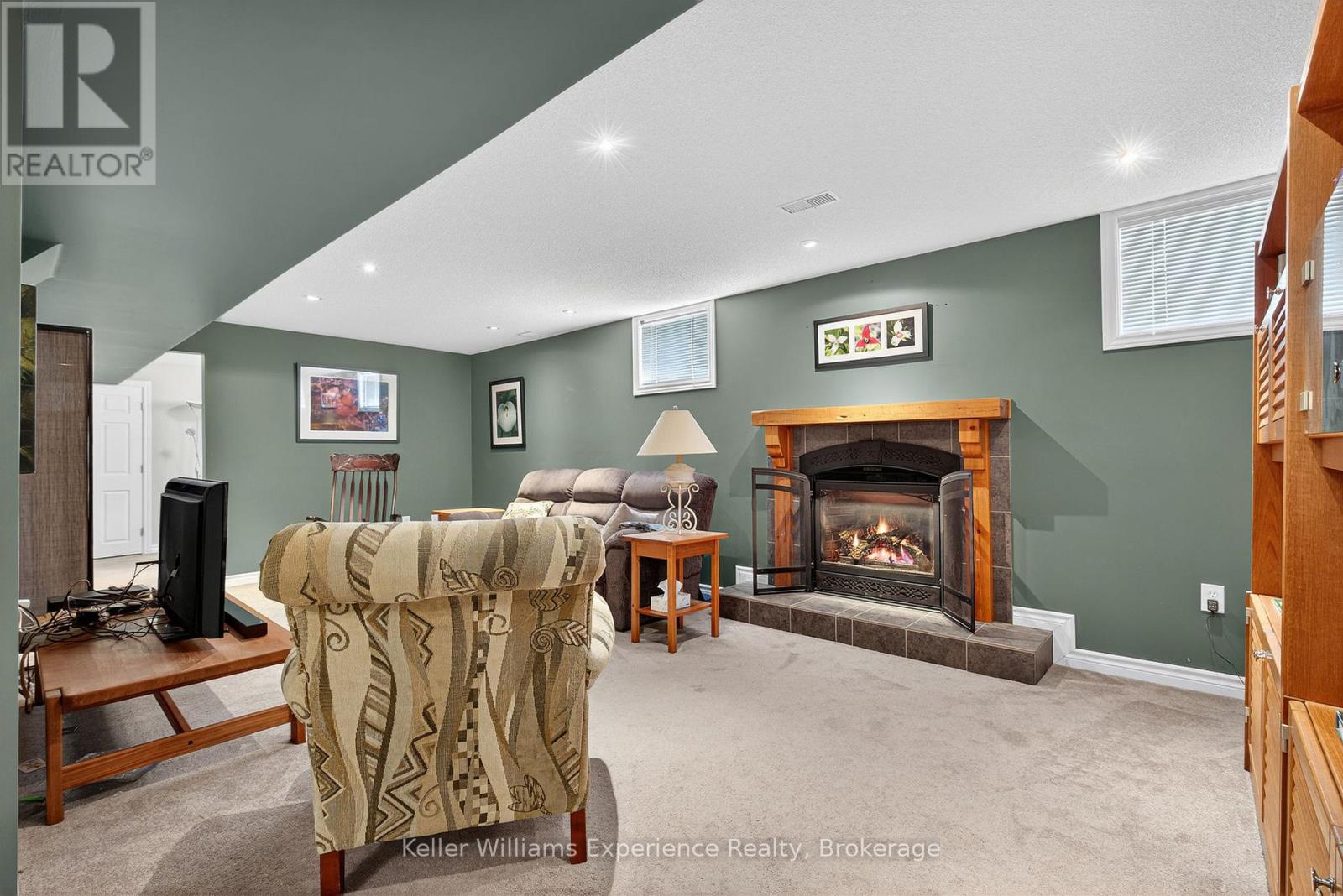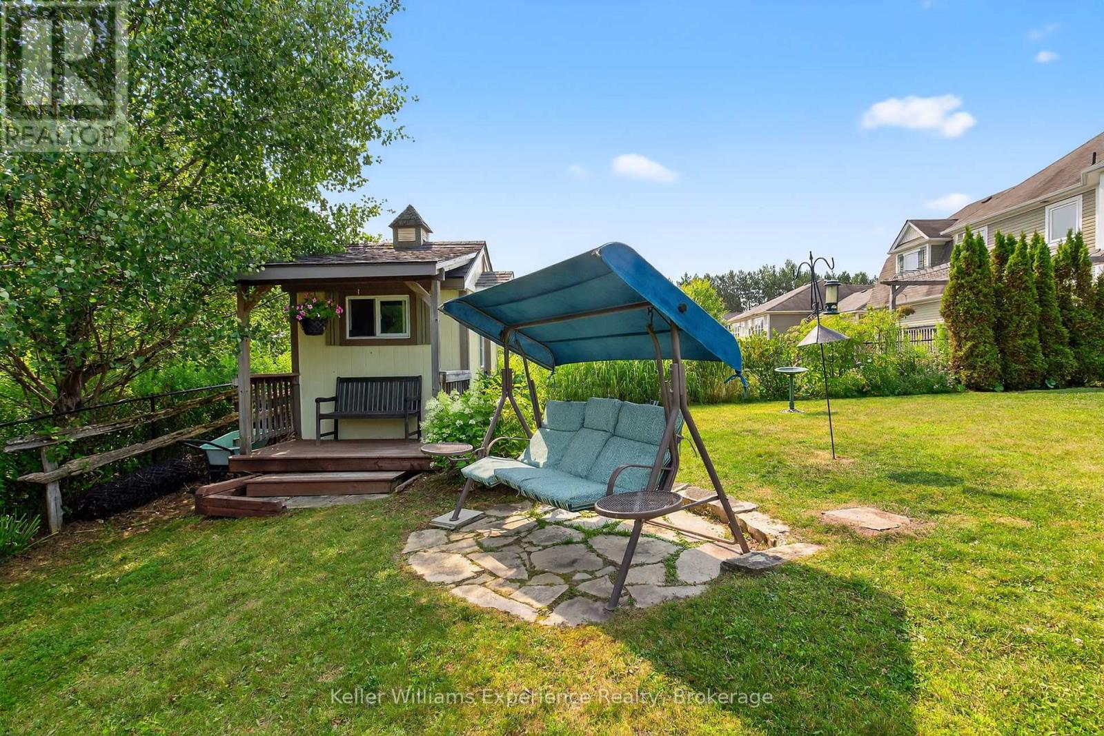 Spectacular inside and out! Watch the Video Tour! 4 bed 3 bath Bungalow backing on greenspace in a quiet part of the neighborhood. White Pines is one of Bracebridge's most popular communities, close to the high school, Sportsplex(pool, gym, walking track), performing arts theatre. The home is open concept, w/9ft ceilings, deluxe kitchen, quartz countertops, island, pantry. Hardwood floors, custom tile. Gas fireplace in living-room, primary suite has walk-in closet, Ensuite bath w/jacuzzi tub & walk-in shower. Finished basement gives an extra bedroom, bathroom, rec-room w/gas fireplace, office, lots of storage, large laundry room. LED lighting throughout, custom lighting in kitchen, dining and living room areas, central vac, Attached Muskoka Room, decking, lushly landscaped with garden shed/Bunkie. (id:4069)