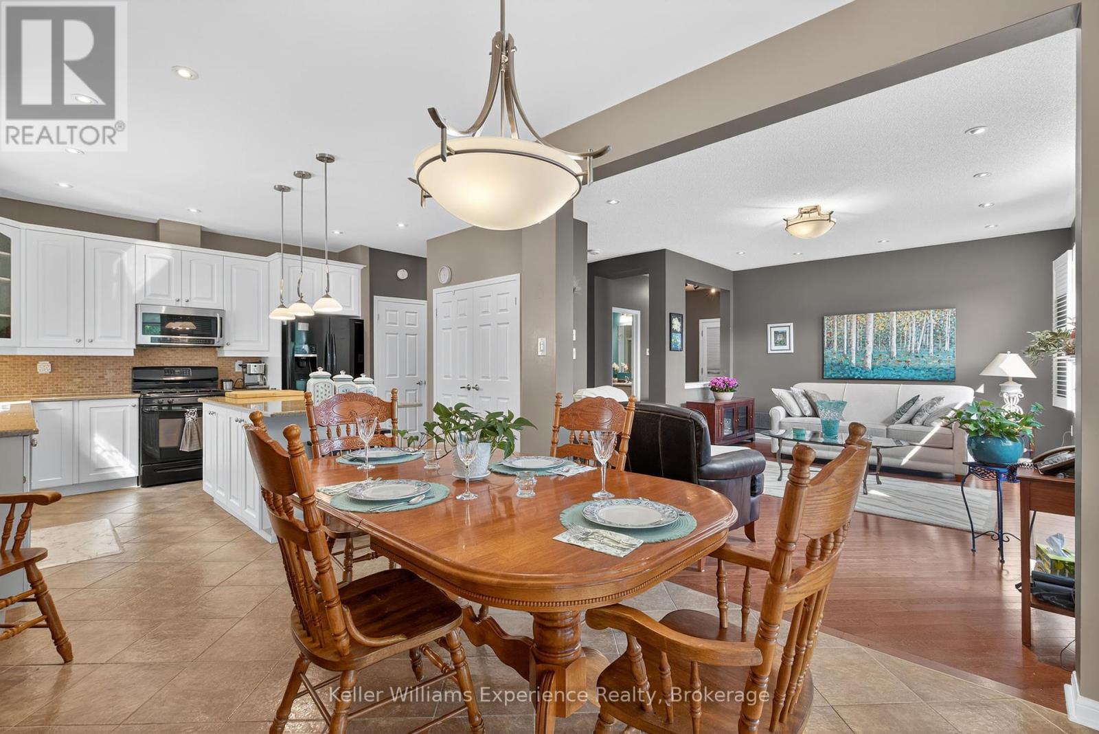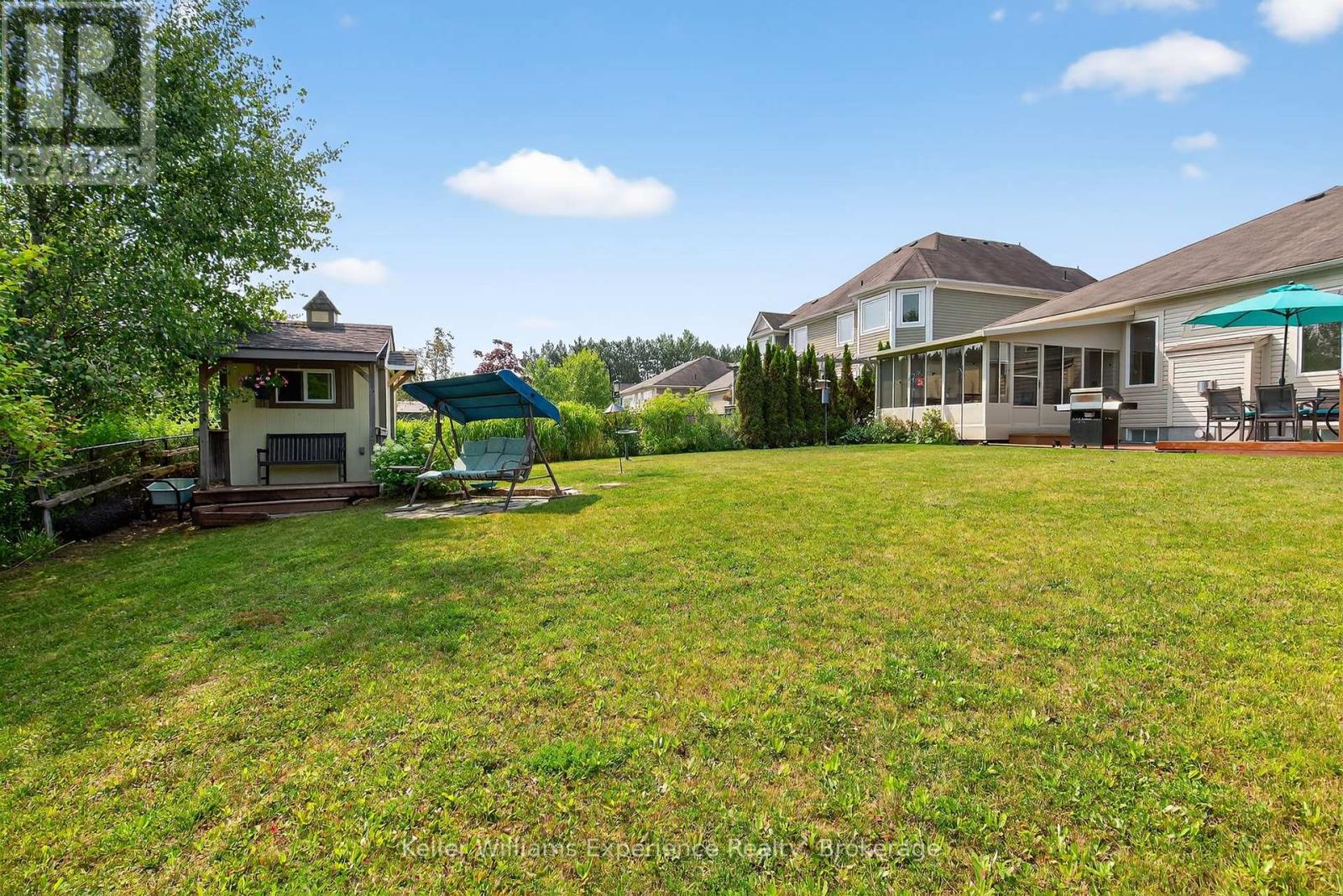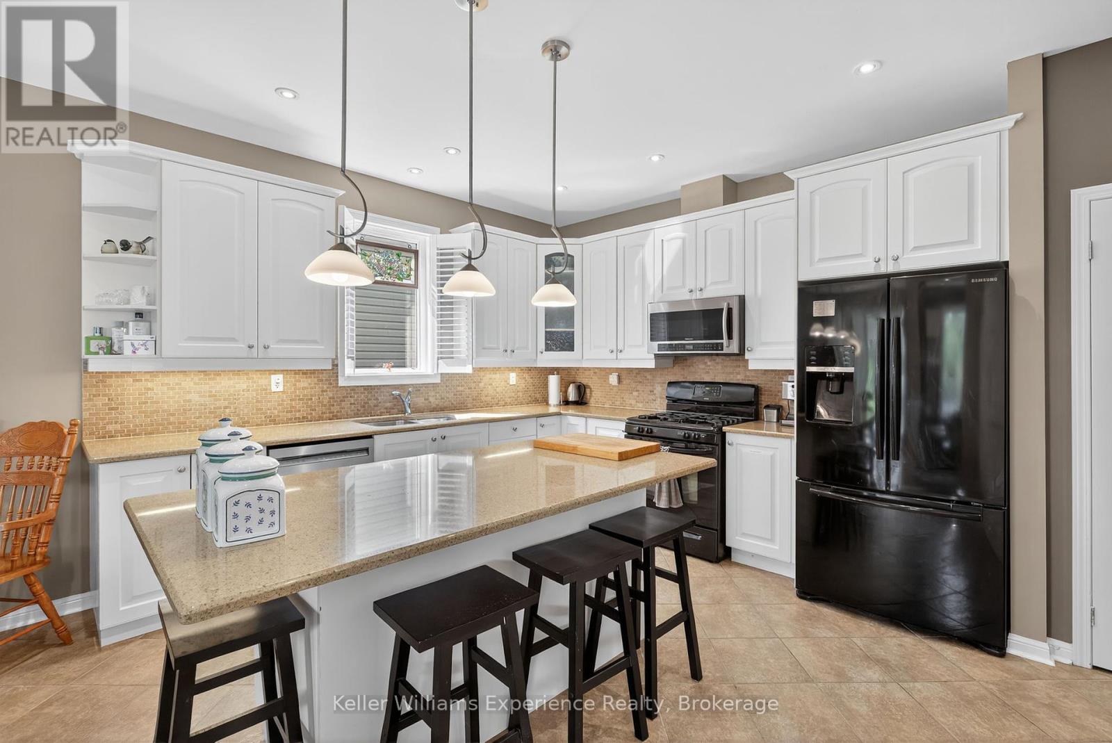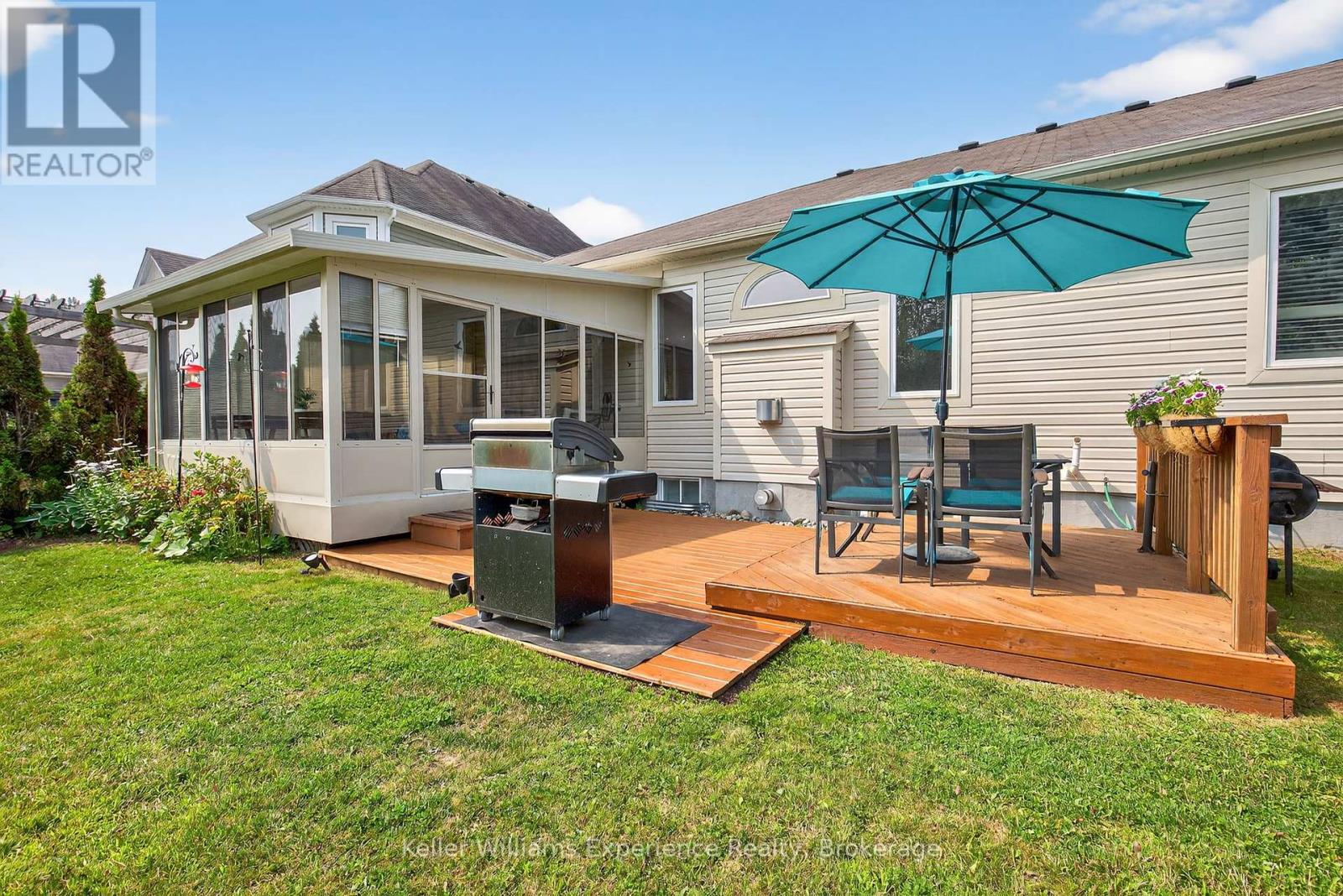Spectacular inside and out! Watch the Video Tour! 4 bed 3 bath Bungalow backing on greenspace in a quiet part of the neighborhood. White Pines is one of Bracebridge's most popular communities, close to the high school, Sportsplex(pool, gym, walking track), performing arts theatre. The home is open concept, w/9ft ceilings, deluxe kitchen, quartz countertops, island, pantry. Hardwood floors, custom tile. Gas fireplace in living-room, primary suite has walk-in closet, Ensuite bath w/jacuzzi tub & walk-in shower. Finished basement gives an extra bedroom, bathroom, rec-room w/gas fireplace, office, lots of storage, large laundry room. LED lighting throughout, custom lighting in kitchen, dining and living room areas, central vac, Attached Muskoka Room, decking, lushly landscaped with garden shed/Bunkie. (id:4069)