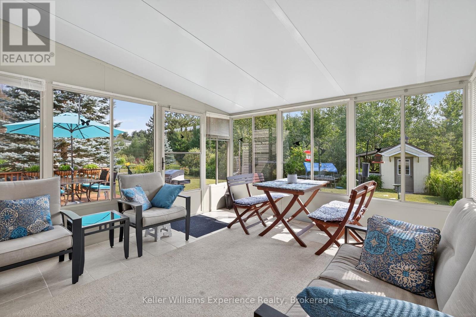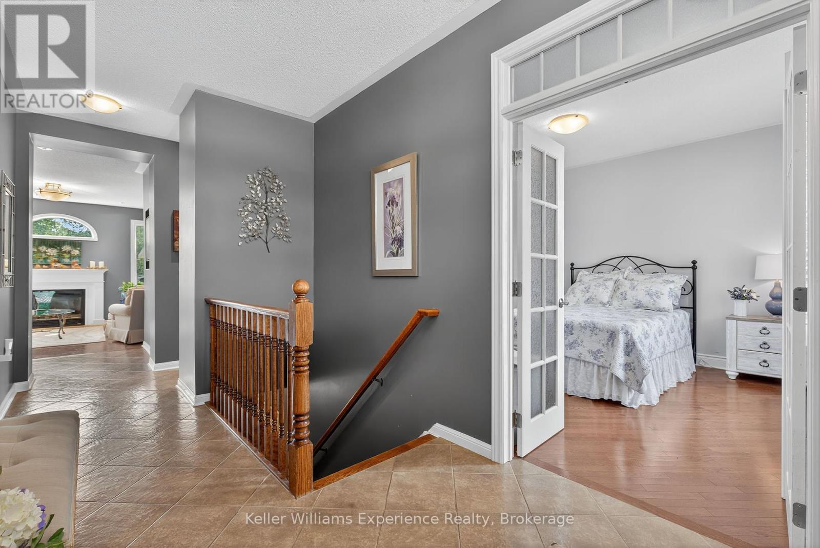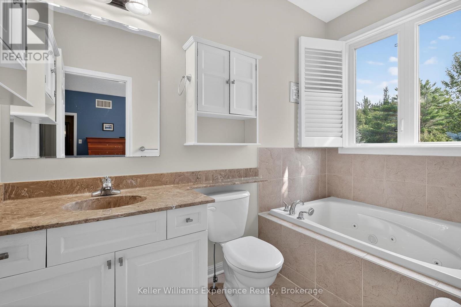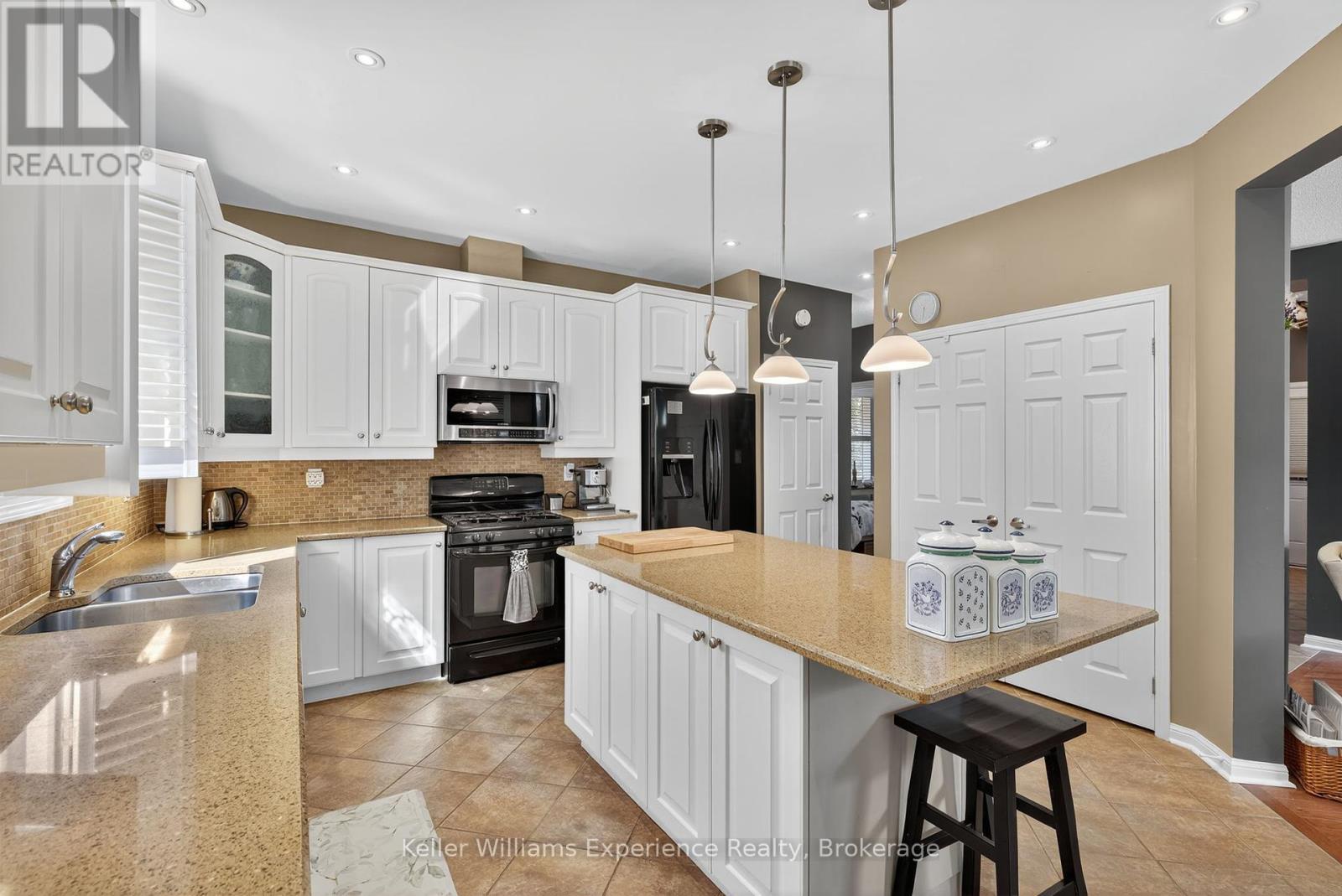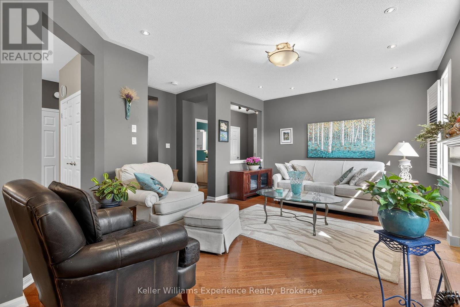 Spectacular inside and out! Watch the Video Tour! 4 bed 3 bath Bungalow backing on greenspace in a quiet part of the neighborhood. White Pines is one of Bracebridge's most popular communities, close to the high school, Sportsplex(pool, gym, walking track), performing arts theatre. The home is open concept, w/9ft ceilings, deluxe kitchen, quartz countertops, island, pantry. Hardwood floors, custom tile. Gas fireplace in living-room, primary suite has walk-in closet, Ensuite bath w/jacuzzi tub & walk-in shower. Finished basement gives an extra bedroom, bathroom, rec-room w/gas fireplace, office, lots of storage, large laundry room. LED lighting throughout, custom lighting in kitchen, dining and living room areas, central vac, Attached Muskoka Room, decking, lushly landscaped with garden shed/Bunkie. (id:4069)