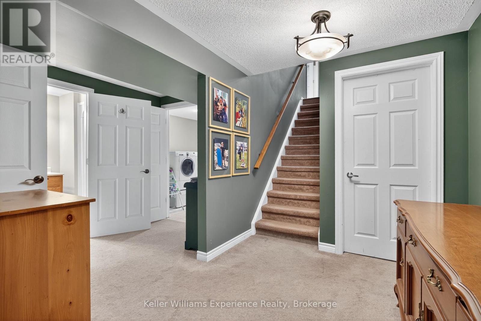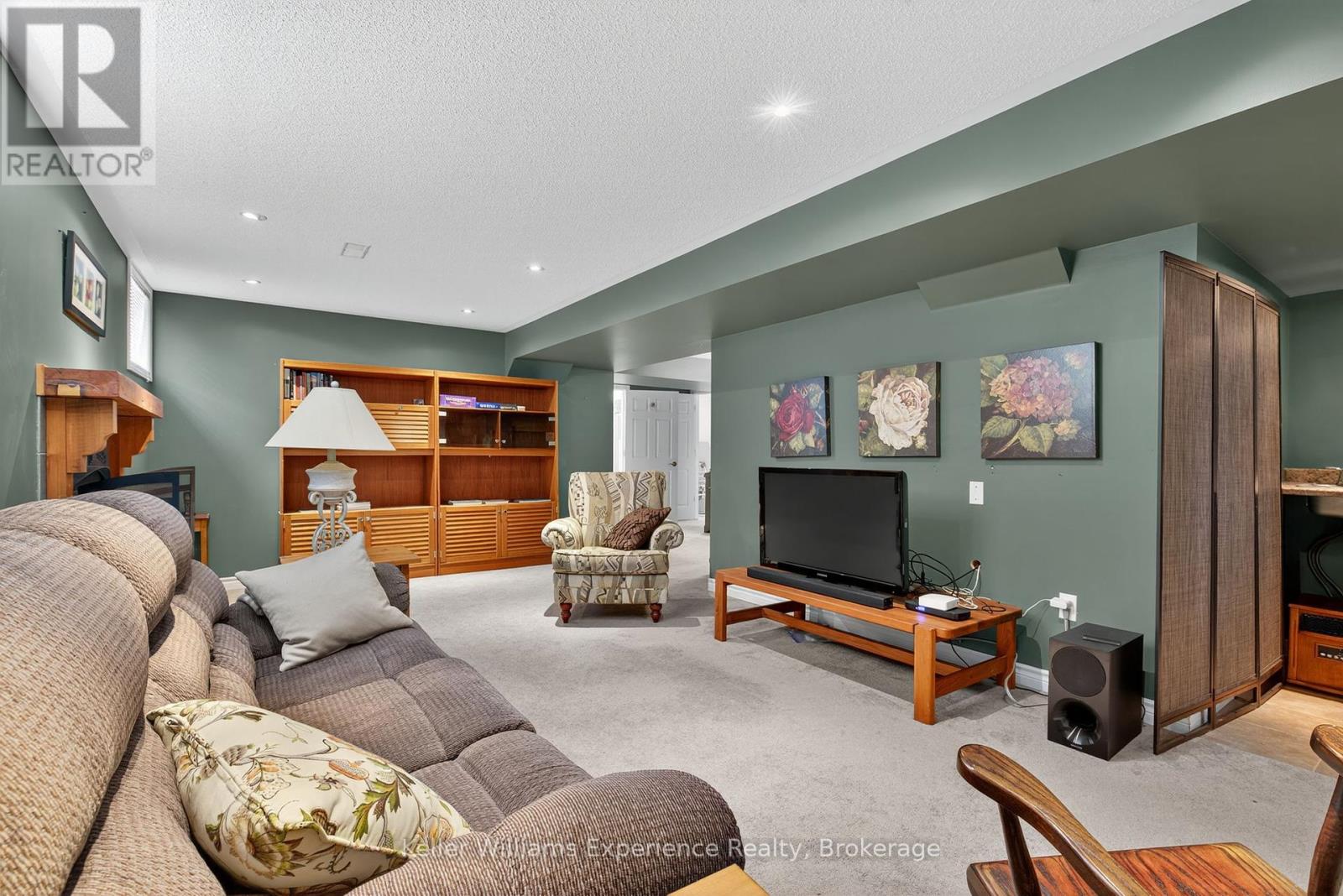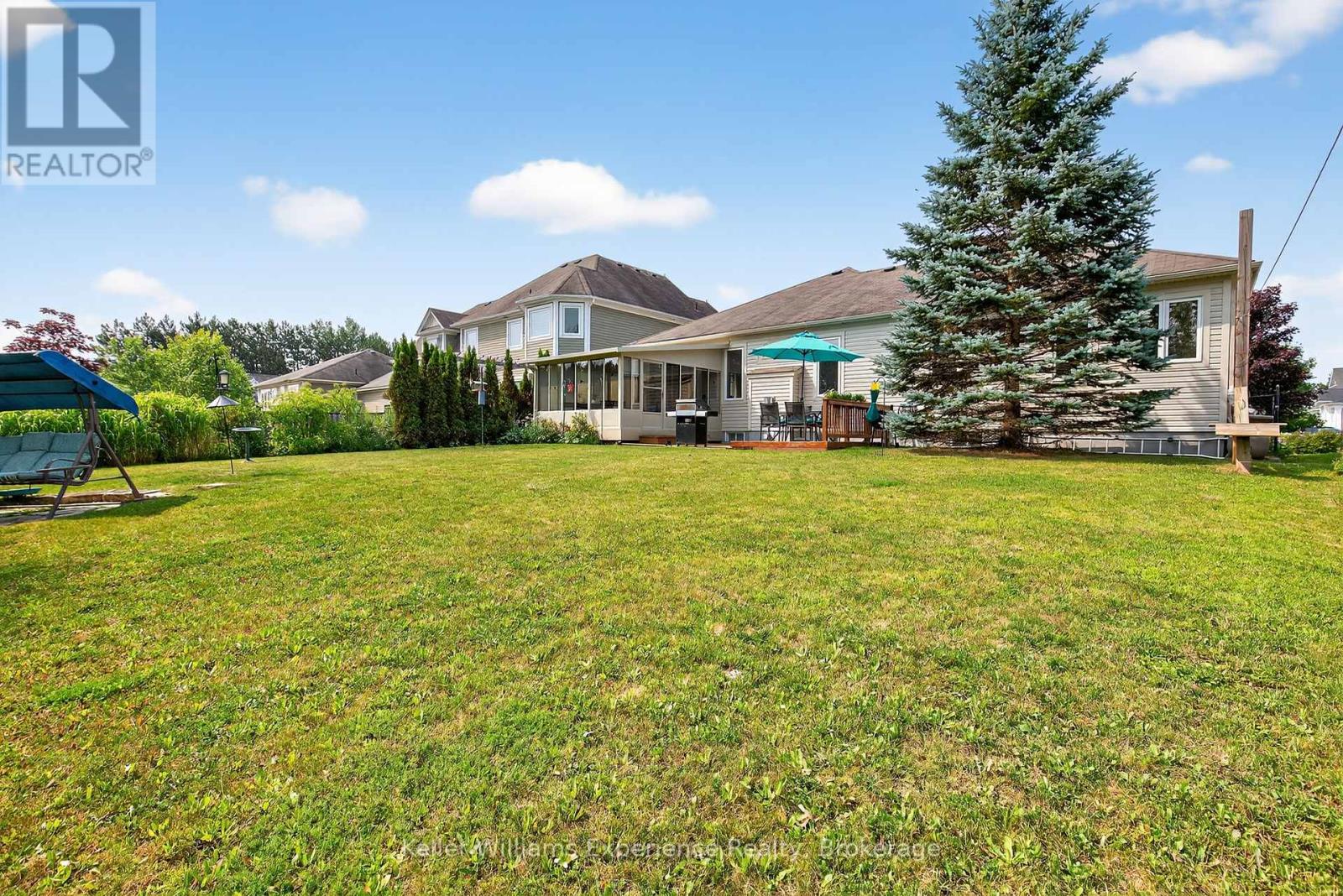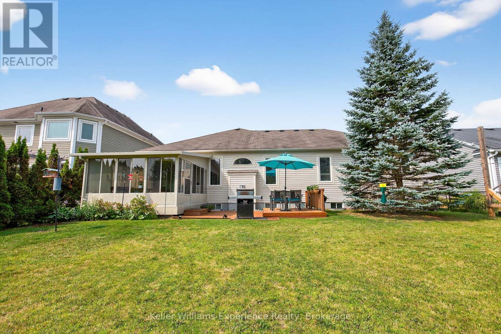 Spectacular inside and out! Watch the Video Tour! 4 bed 3 bath Bungalow backing on greenspace in a quiet part of the neighborhood. White Pines is one of Bracebridge's most popular communities, close to the high school, Sportsplex(pool, gym, walking track), performing arts theatre. The home is open concept, w/9ft ceilings, deluxe kitchen, quartz countertops, island, pantry. Hardwood floors, custom tile. Gas fireplace in living-room, primary suite has walk-in closet, Ensuite bath w/jacuzzi tub & walk-in shower. Finished basement gives an extra bedroom, bathroom, rec-room w/gas fireplace, office, lots of storage, large laundry room. LED lighting throughout, custom lighting in kitchen, dining and living room areas, central vac, Attached Muskoka Room, decking, lushly landscaped with garden shed/Bunkie. (id:4069)